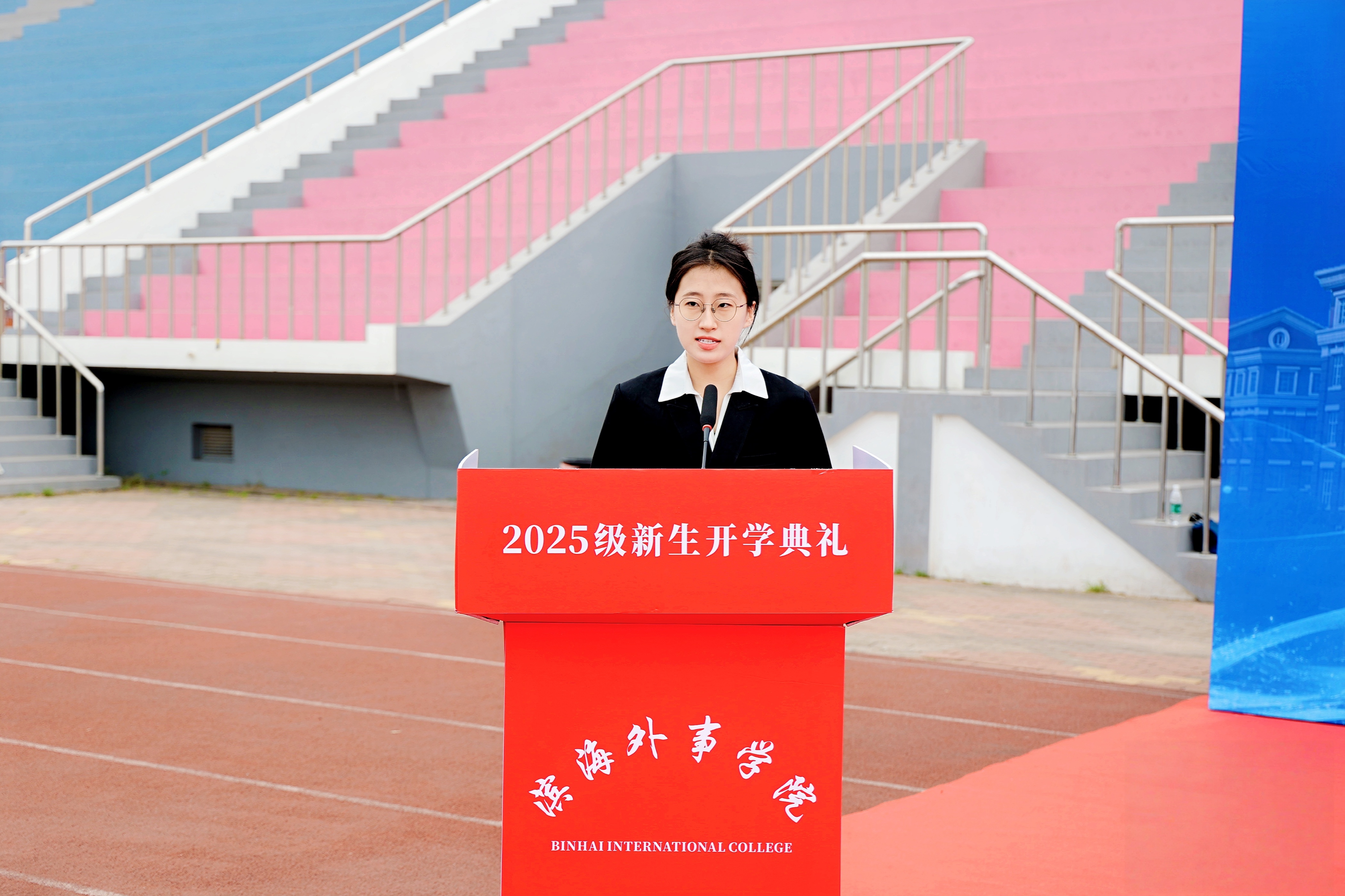 值此2025级新生入学之际,恰逢上合组织天津峰会为科教融合提供新机遇,也正值滨外深化‘AI智能+外语’特色教育的关键阶段,2025级新生将以“新燕”之姿,乘上合合作东风,在滨外的国际化教育沃土中拔节成长。他们将传承往日之序,书写未来之章,用跨文化交流能力与创新精神,唱响属于滨外的“世界之声”,奋力书写为中国式现代化挺膺担当的青春篇章。