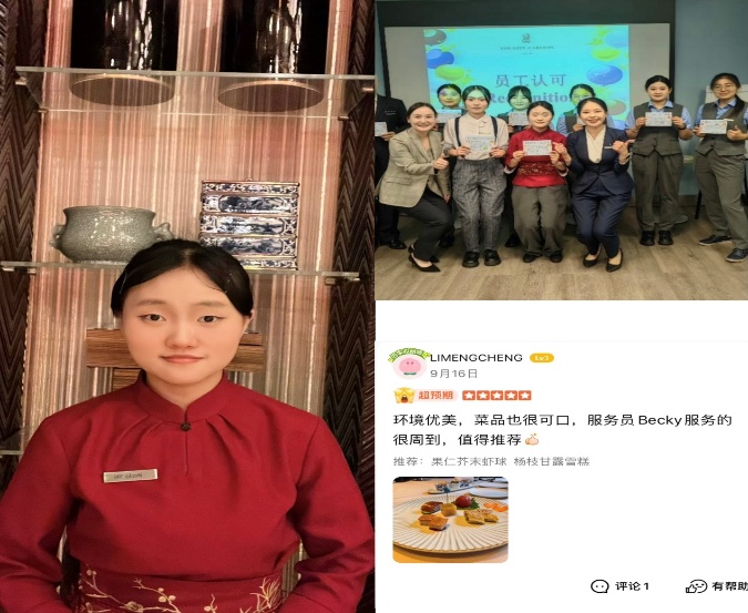 团队协作是服务高效运转的关键,服务不是“单打独斗”,默契补位才能保障品质。同时我也非常荣幸地参与九三阅兵期间多个代表团接待工作。后续我会深化对客群需求的理解,传递品牌调性,提升专业技能,为实习画上充实且有价值的句号。