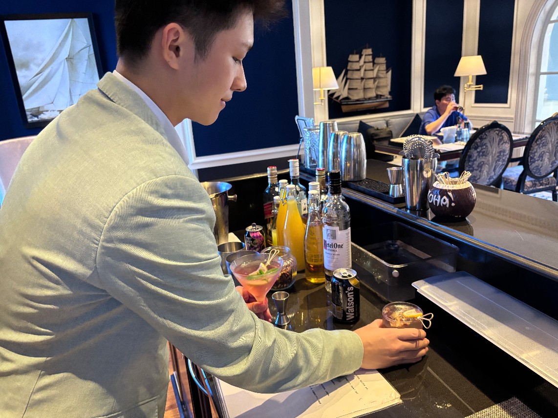 在天津丽思卡尔顿行政酒廊的实习,是一场对“服务”的深度解码。这里的每一处细节都诠释着品牌的极致追求,从晨间咖啡拉花的精准弧度,到傍晚为宾客定制专属鸡尾酒时的耐心问询,我深刻体会到“以绅士淑女的态度,为绅士淑女服务”并非口号,而是融入每一次躬身、每一句问候的行动准则 。