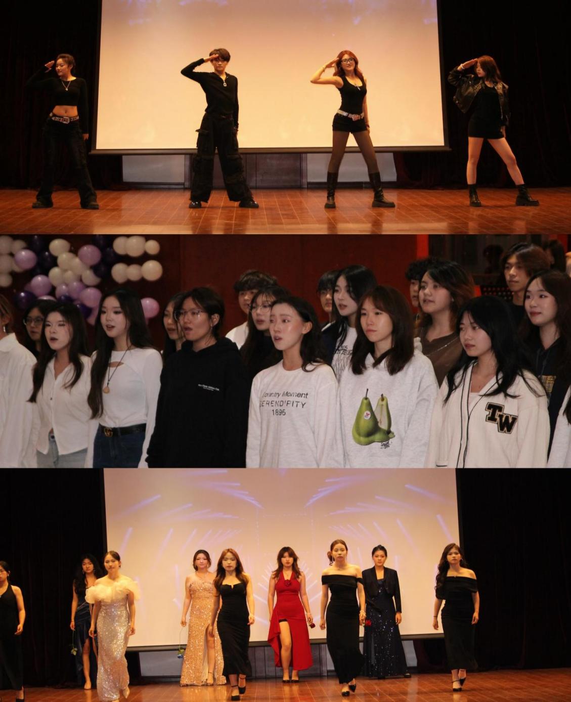 赛前,各系有序完成节目审核与彩排筹备工作;比赛期间,大学生联合艺术团带来精彩串场表演:舞蹈《Kill This Love》动感十足、点燃全场;礼仪表演《Glamour Night》优雅端庄、尽显风采;合唱《飞云之下》温柔治愈、打动人心,为班歌比拼增添了更多看点。