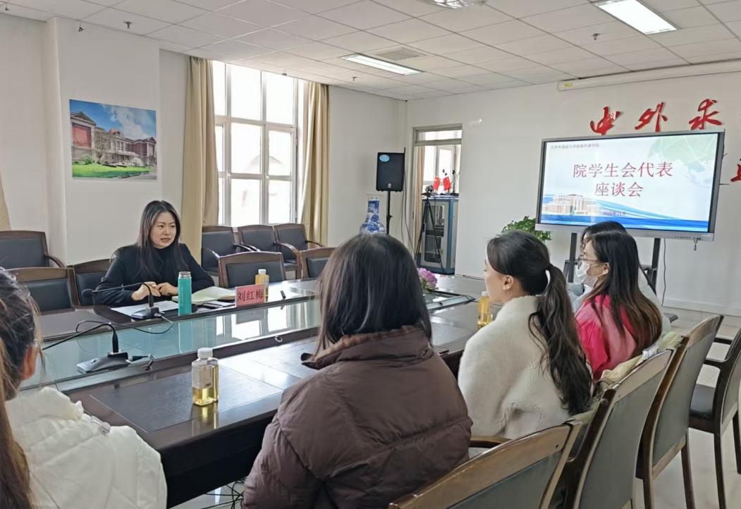 座谈会上,院学生会主席团首先汇报了换届后的分工情况,各部长结合部门职责,围绕活动组织、学生权益服务、内部建设等方面分享实践经验,并就工作中遇到的难点问题提出思考。刘红梅认真倾听每一位学生代表的发言,并与大家互动交流,针对“如何提升学生活动质量”“怎样更精准对接学生需求”等关键问题给出具体指导。