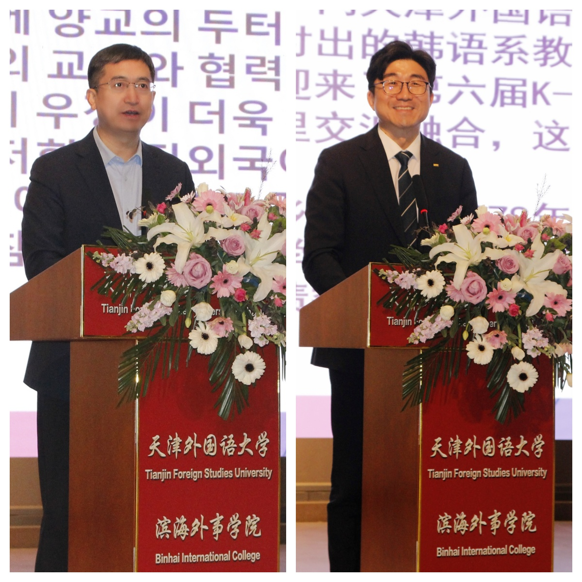 院长郭建校在致辞中向顺天乡大学代表团表示热烈欢迎,并对顺天乡大学长期以来的支持致以诚挚感谢。他表示,顺天乡大学是我院合作最早、最紧密的伙伴之一,自2006年建立合作关系以来,两校在学科建设与人才培养等方面开展了广泛合作,顺天乡大学为我院学生提供的奖学金与优惠政策,有力支持了国际化复合型人才培养。他强调,连续举办的K-POP歌舞大赛日益成为具有广泛影响力的国际化品牌项目,既为学生提供了展示才华、理解文化的舞台,也凝聚着两校的深厚情谊,期待未来合作不断深化,友谊长存。