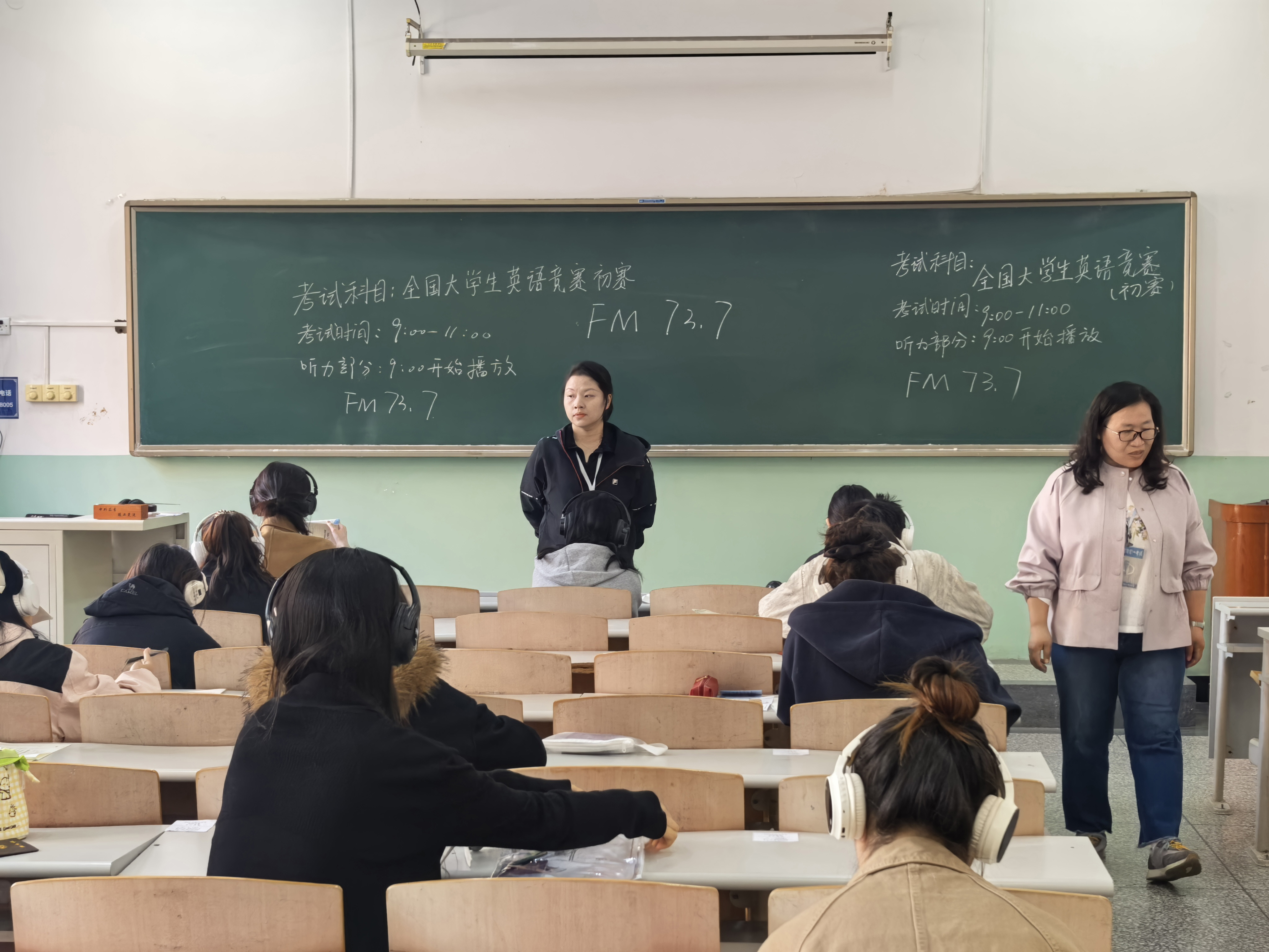 竞赛考试日,从密封试卷拆封、考生安检、身份核验、考场引导,到试卷分发、听力播放、秩序维护,实现全流程执行大英竞赛全国组委会规定。监考教师认真履职、公正严谨,教务部与机动教师全程值守、快速响应,用细致服务与严谨态度,为参赛学生营造公平、公正、安静的考试氛围。