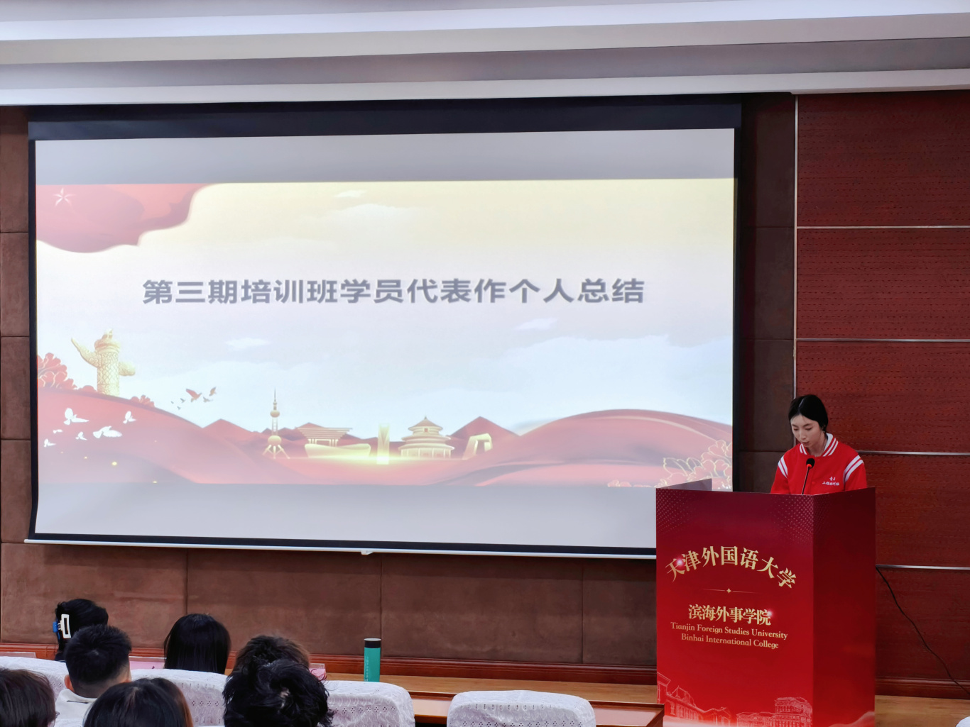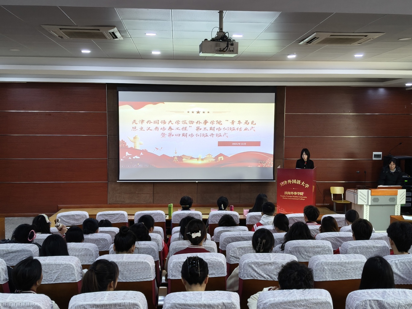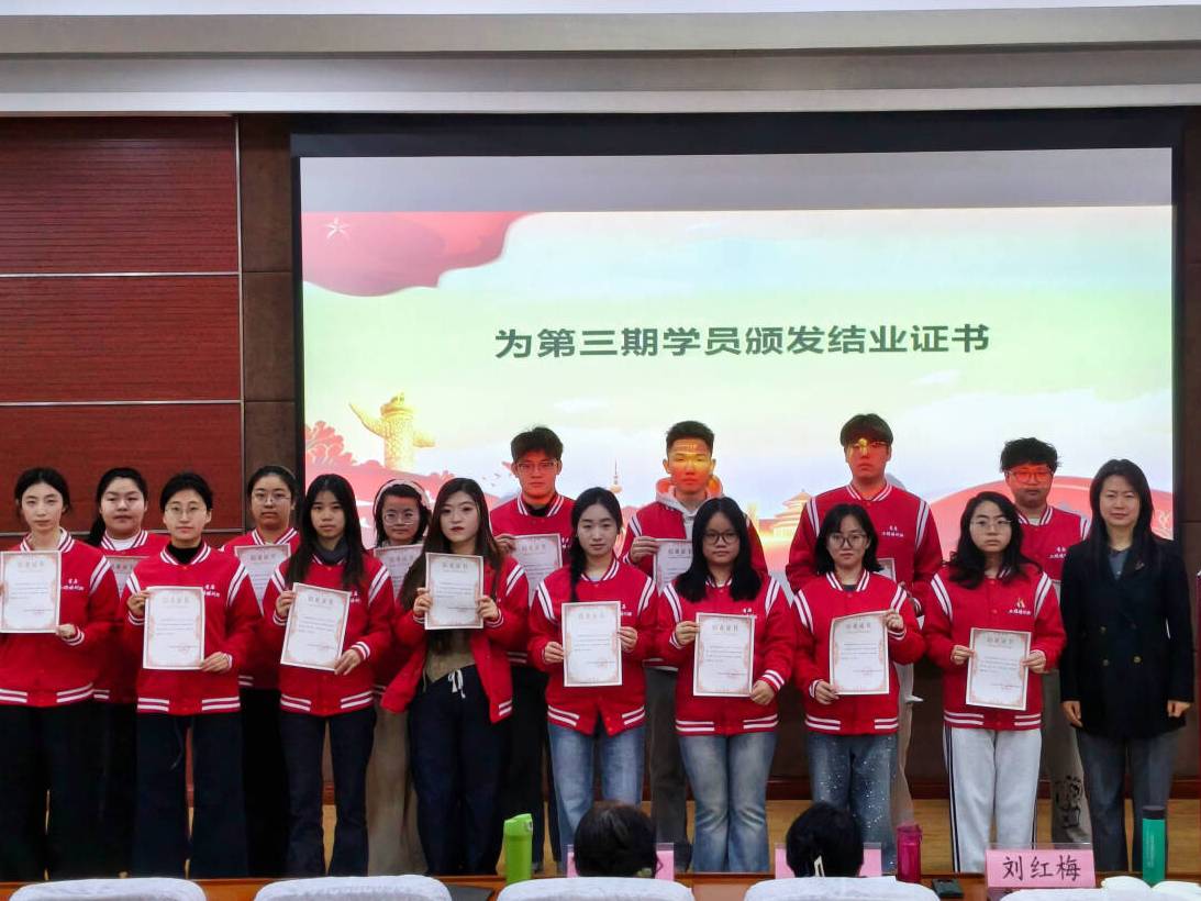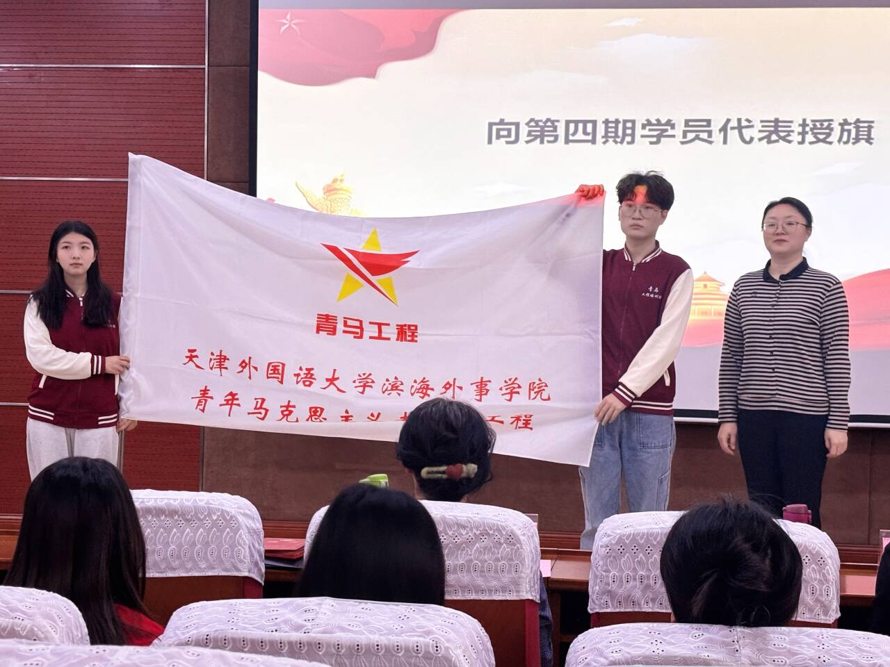 为深入实施青年马克思主义者培养工程,加强对广大团员青年的思想引领,12月26日,天津外国语大学滨海外事学院“青年马克思主义者培养工程”第三期培训班结业式暨第四期培训班开班式在第三教学楼104顺利举行。学院党委书记王红,党委副书记、纪委书记刘红梅,马克思主义学院教师朱月宇,团委书记李灿及我院“青马工程”第三、四期学员共同参与,见证青马精神的传承与延续。