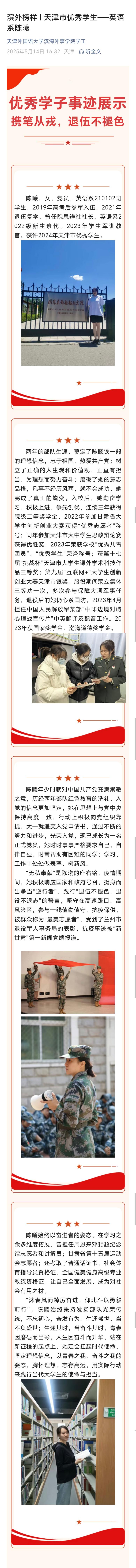 滨外榜样:英语系 陈曦