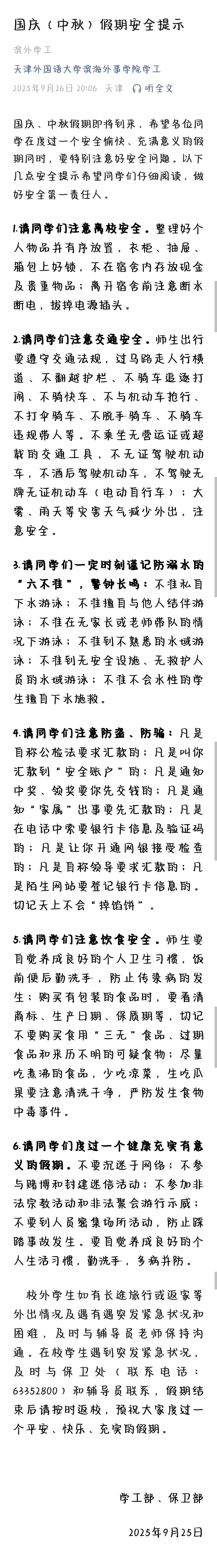 国庆(中秋)假期安全提示