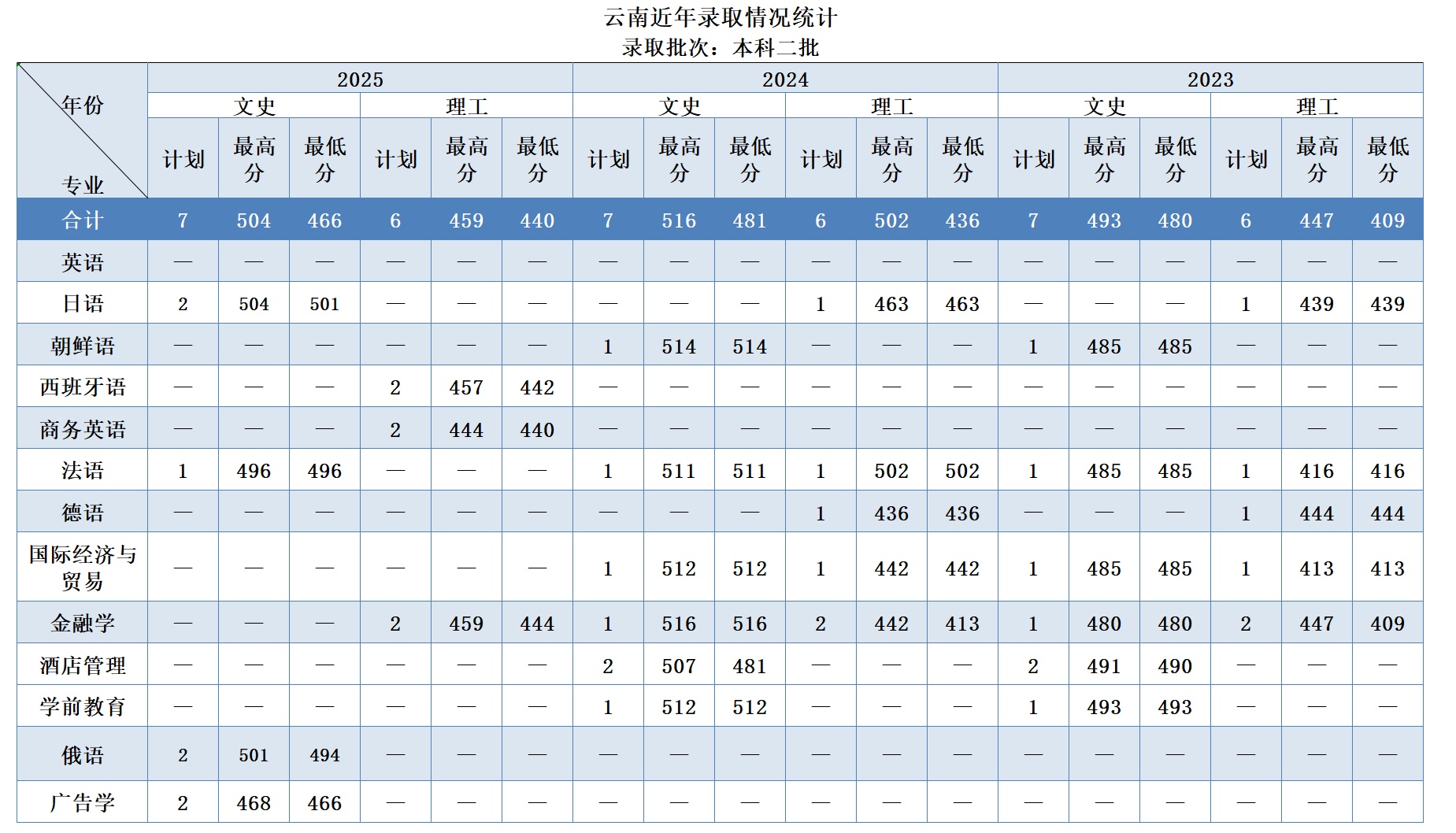 云南历年录取分数汇总