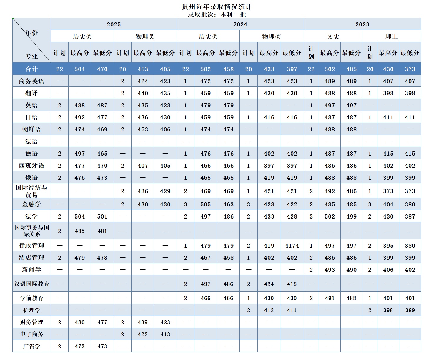 贵州历年录取分数汇总