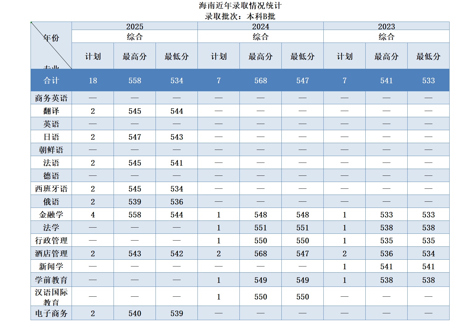 海南历年录取分数汇总